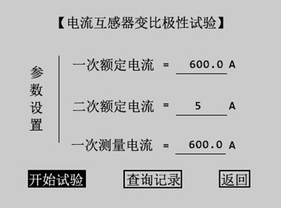 一次測量電流:在互感器綜合特性測試儀變比極性試驗時,電流互感器一次側(cè)實際施加的電流,內(nèi)置升流器升流范圍為0~600A。按被試品的比值大小來設(shè)定一次測量電流,如果一次額定電流超過600A,可將一次測量電流設(shè)為400A~600A。