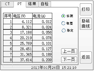 智能互感器測試儀的勵(lì)磁數(shù)據(jù)