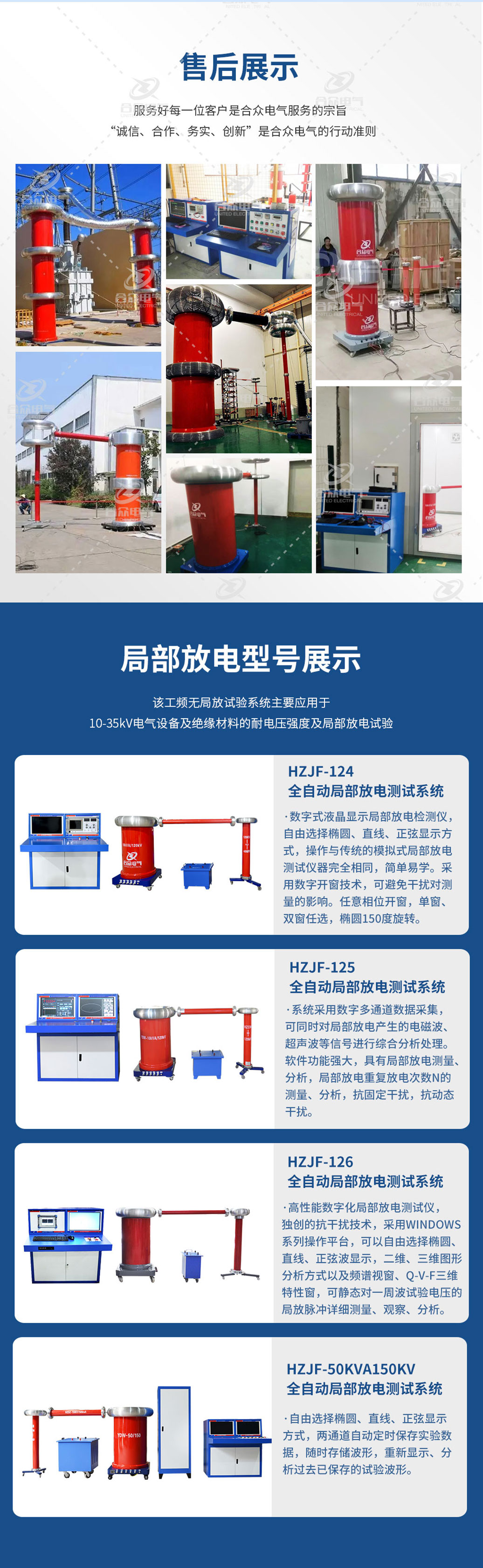 合眾電氣作為無局放耐壓試驗裝置生產(chǎn)制造的老廠家,研發(fā)技術(shù)底蘊深厚,售后服務(wù)體系完備完善,目前已為千余家客戶提供過無局放耐壓試驗裝置相關(guān)售后服務(wù)。